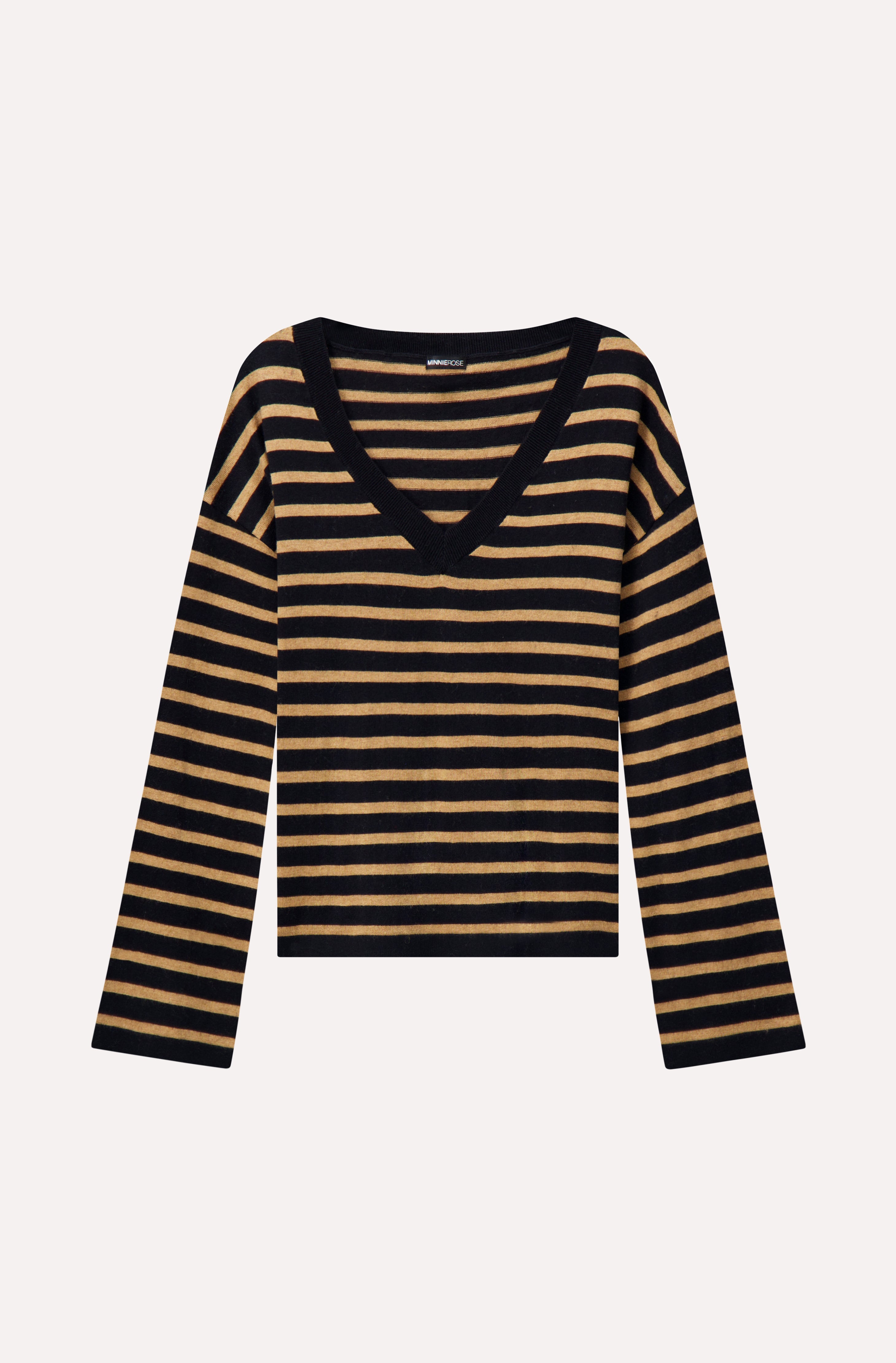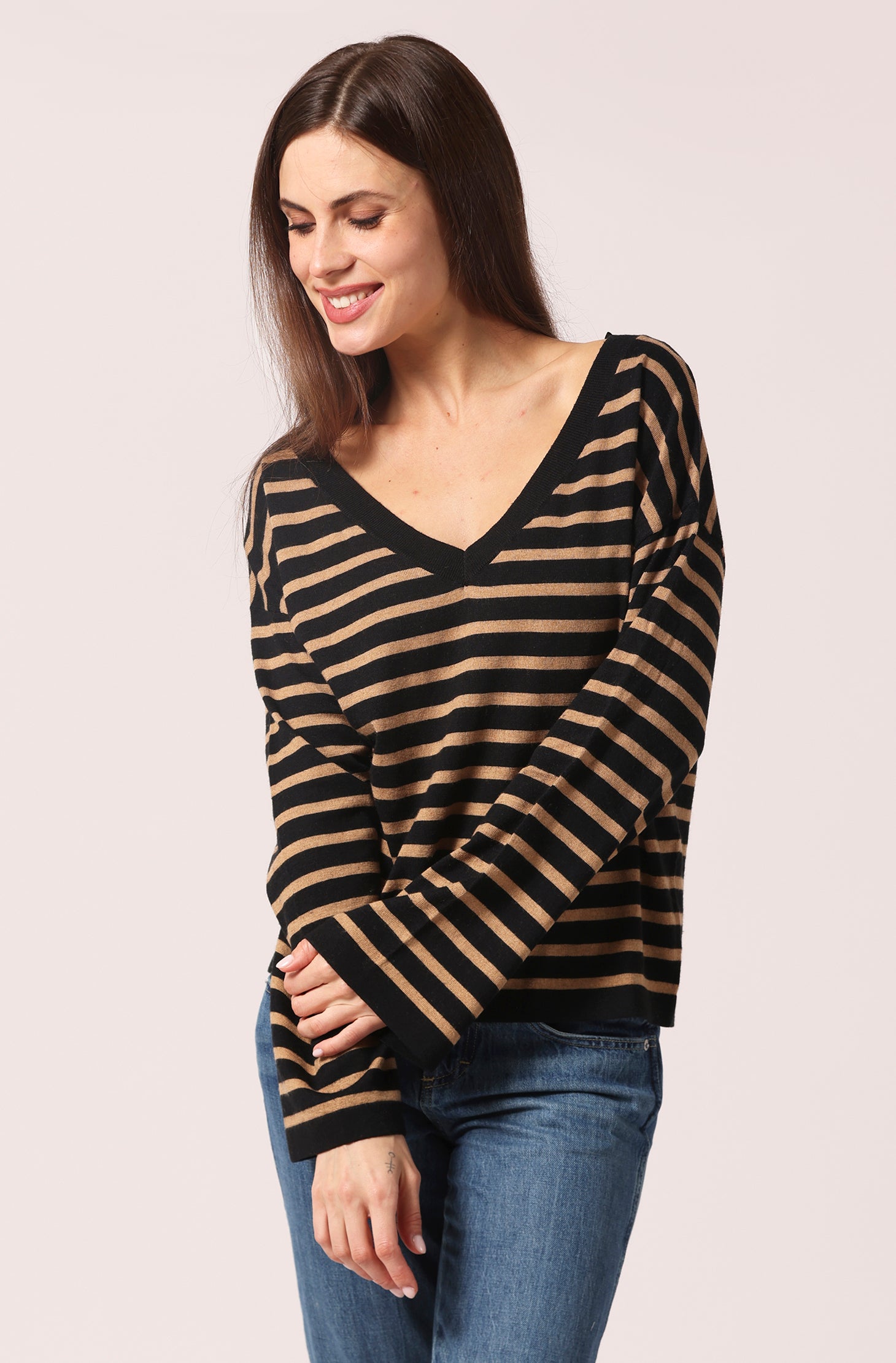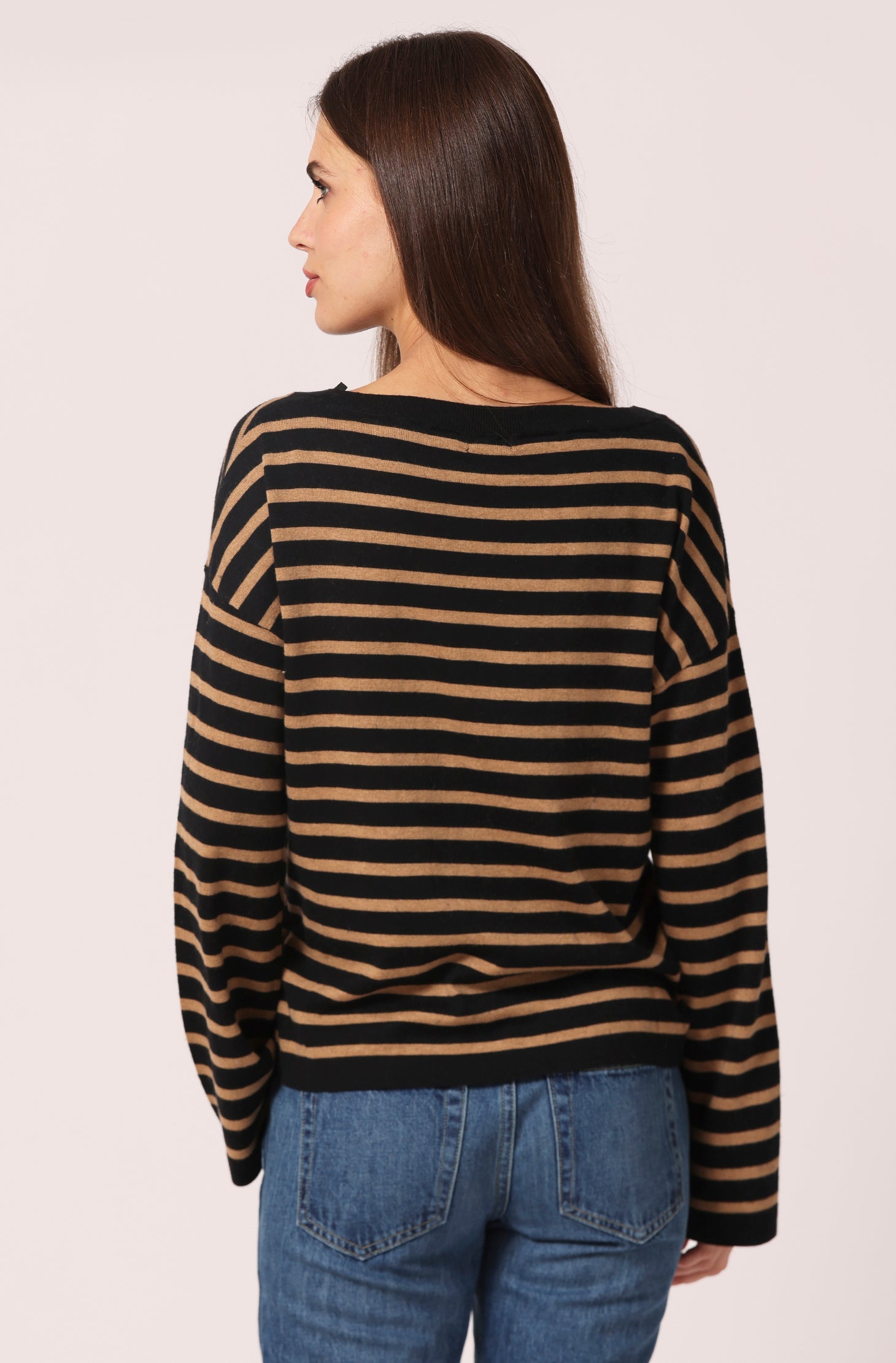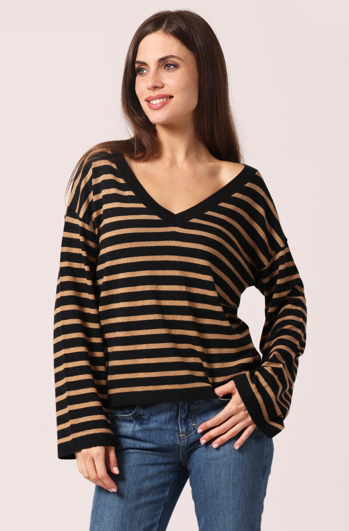 Striped, soft, and undeniably sexy! The Supima Cotton Cashmere Striped Wide V Neck is the kind of effortless essential that does just enough. Crafted from a dreamy blend of Supima cotton and cashmere, it feels like second skin—light, breathable, and touchably soft. The wide V neckline teases just the right amount of décolletage, while the body-skimming fit makes this top anything but basic.