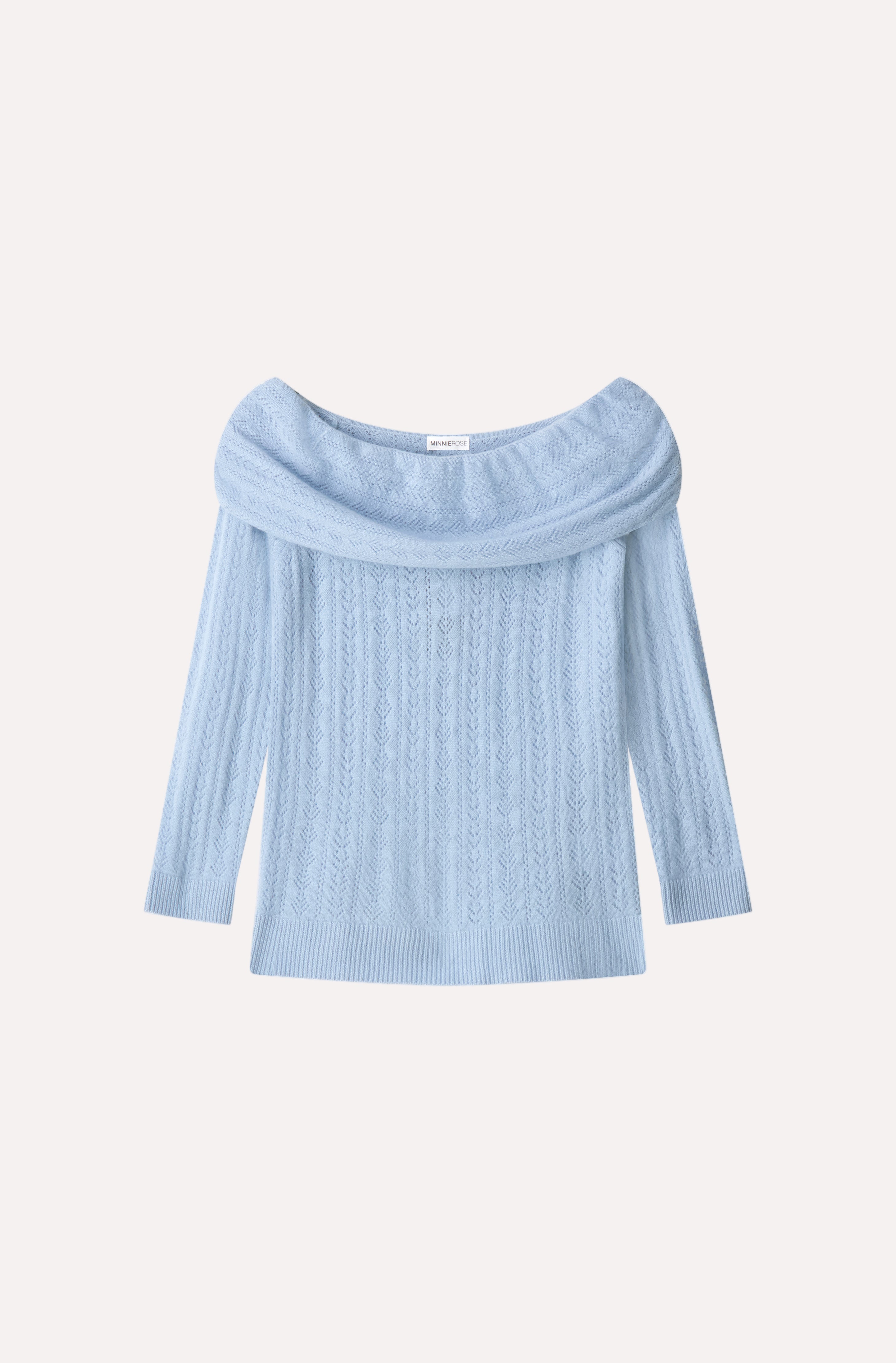 Soft, playful, and effortlessly chic. Delicate pointelle detailing meets a flirty tiered silhouette, while the off-shoulder neckline adds just the right touch of drama. Crafted from sumptuously soft cashmere, this piece drapes beautifully and moves with ease—perfect for layering or wearing solo when you want to make a statement without trying too hard.