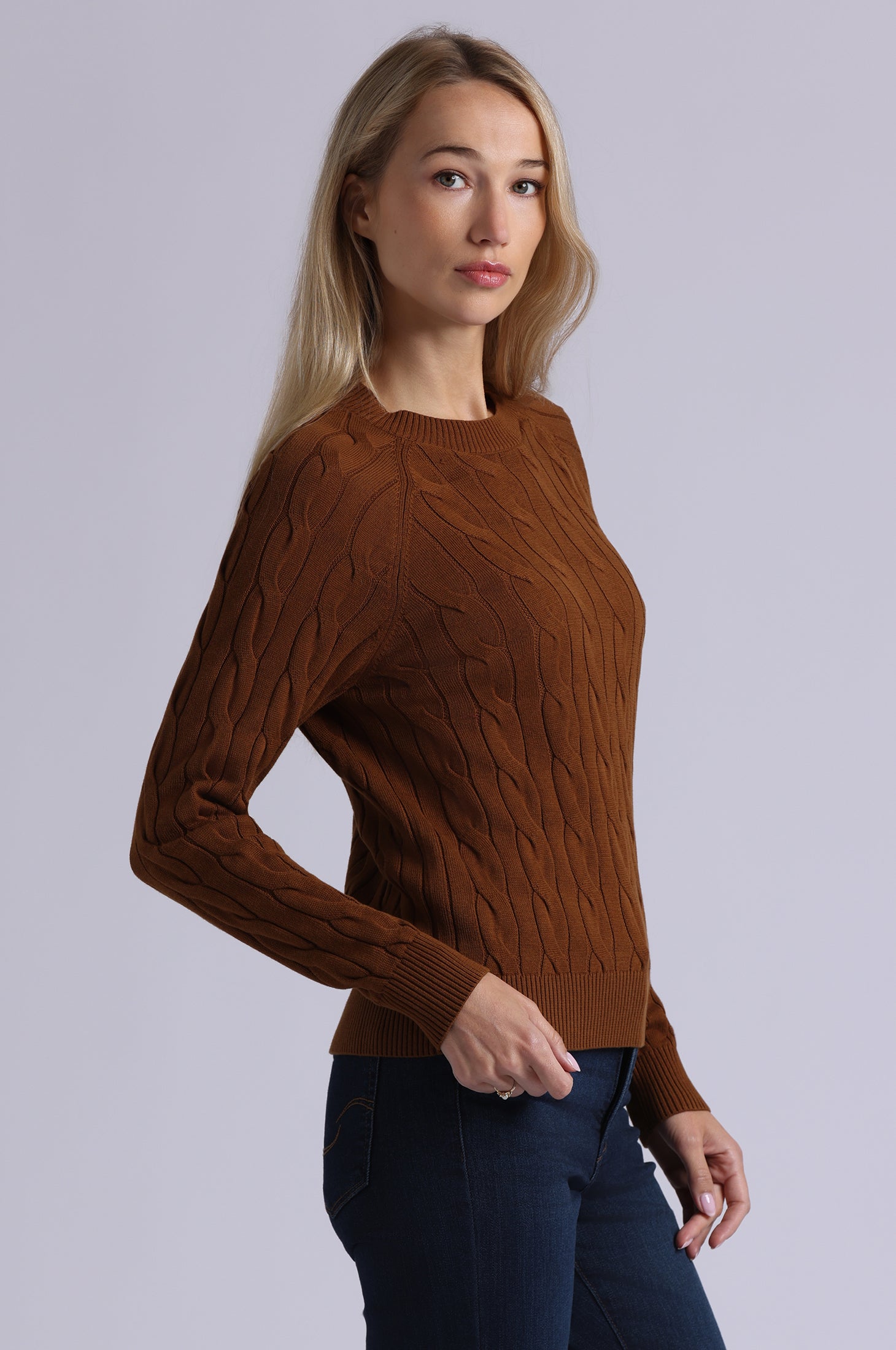 Timeless cable, elevated. The Cotton Classic Cable Crew sculpts, drapes, and enriches every outfit with understated sophistication. Sumptuously soft and exquisitely crafted, it’s the kind of wardrobe essential you’ll want in every color.