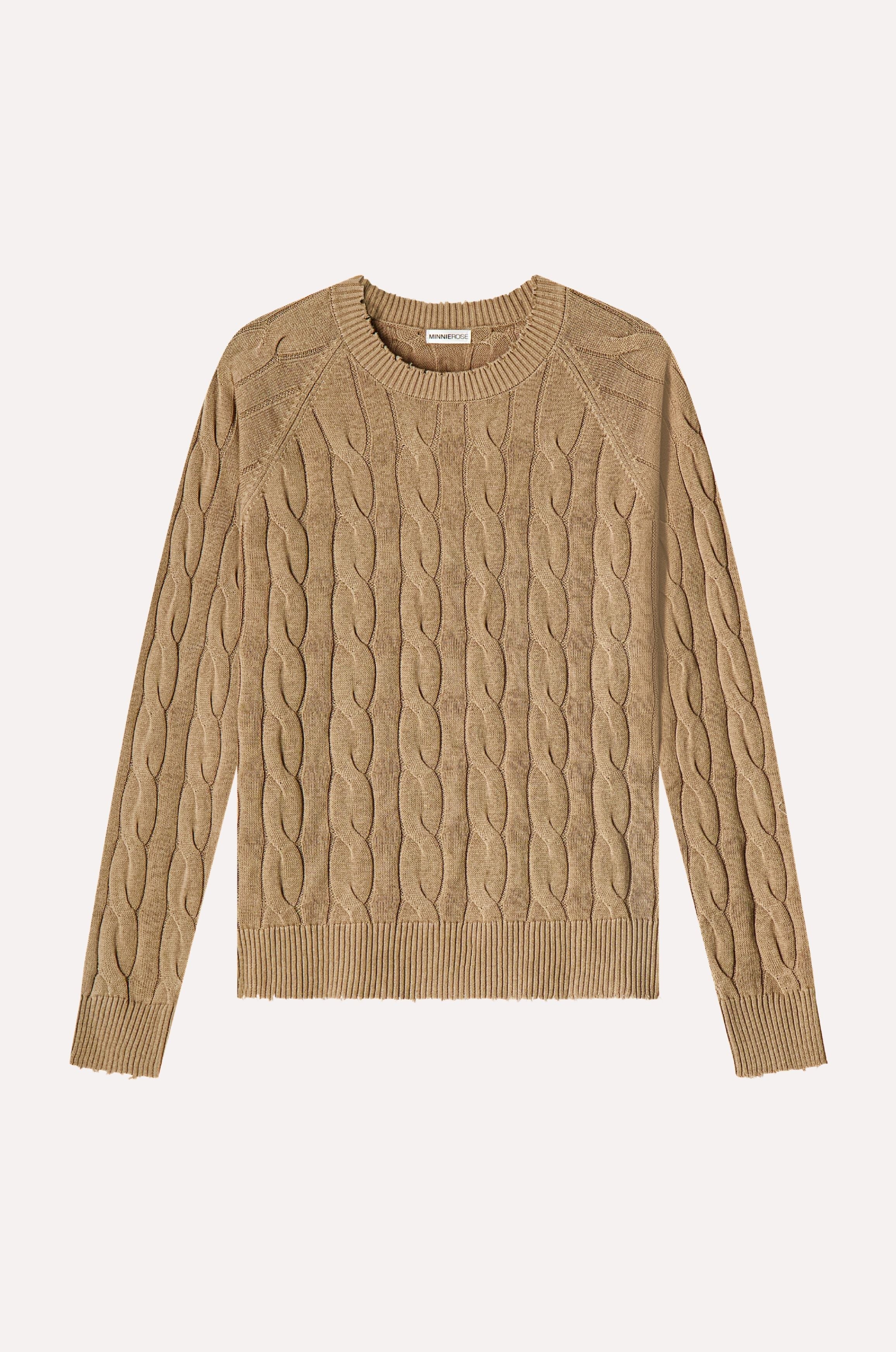 This slim fit, cable knit crew is given rock n' roll vibes by updating with frayed edges and a dreamy fall palette. This sweater should be stacked in every color in your closet.