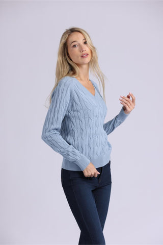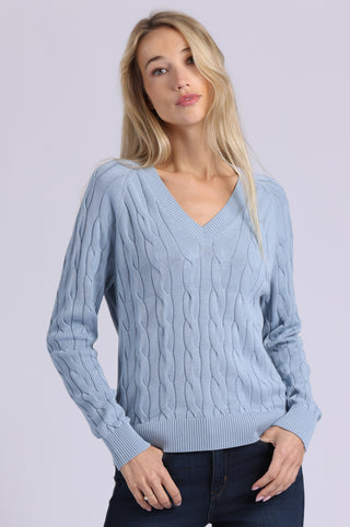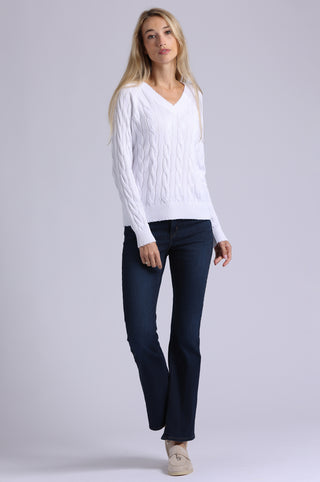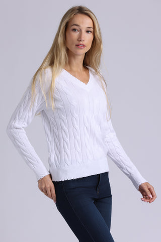 Cotton Cable Long Sleeve V Neck with Frayed Edges