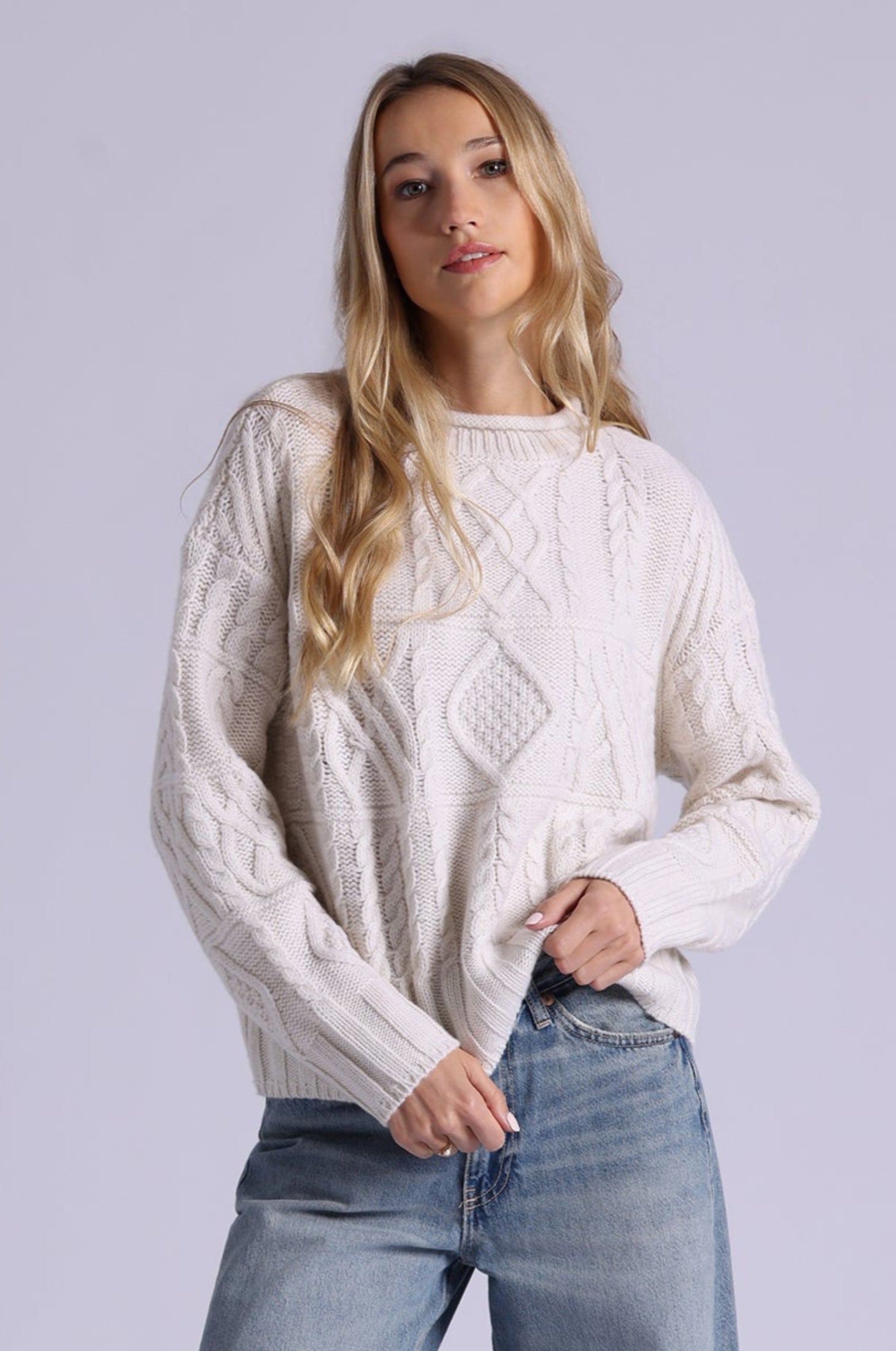 Your new go-to for maximum comfort with major personality. Intricate cablework brings rich texture and dimension, while the modern boxy fit adds an effortless edge. Spun from 100% Pure Air Cashmere, it’s cloud-soft, cozy, and endlessly wearable—the kind of sweater you’ll reach for all season long.