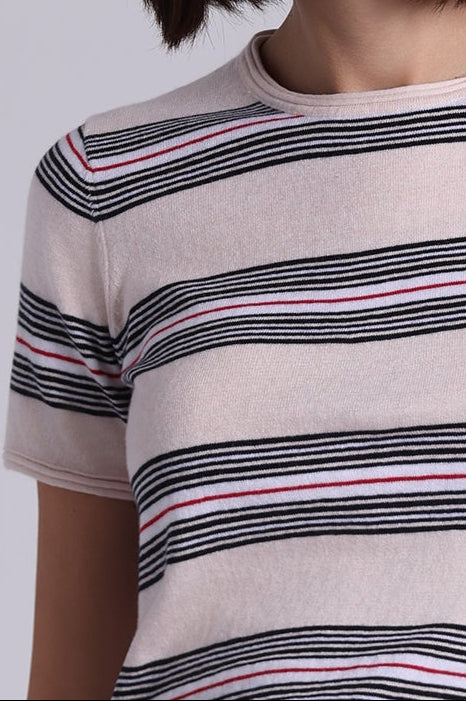 Our signature cotton-cashmere blend finished with fine stripes for a subtle statement.