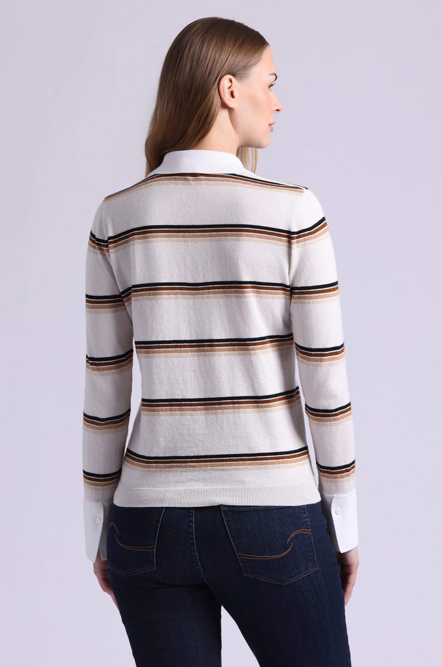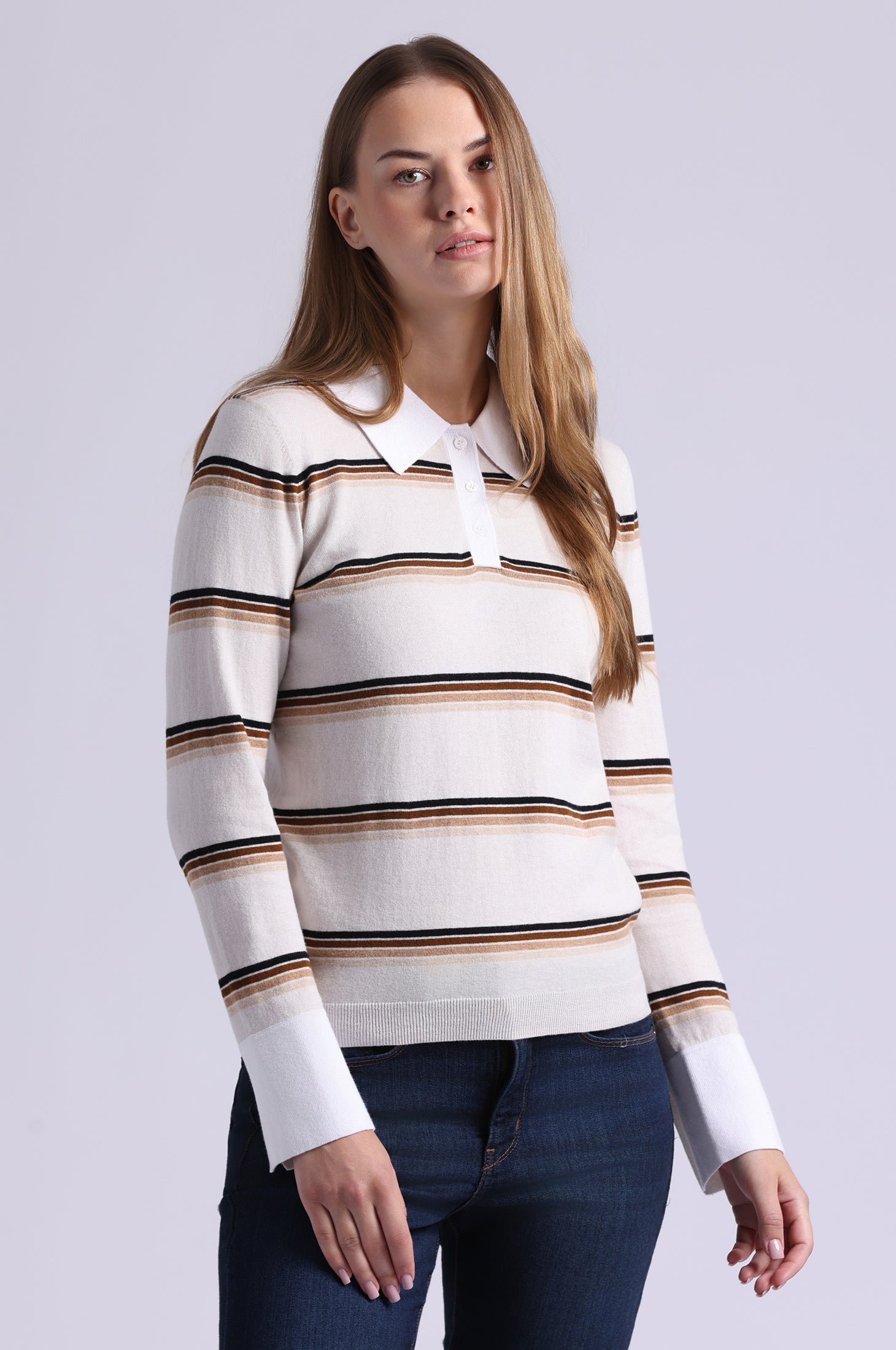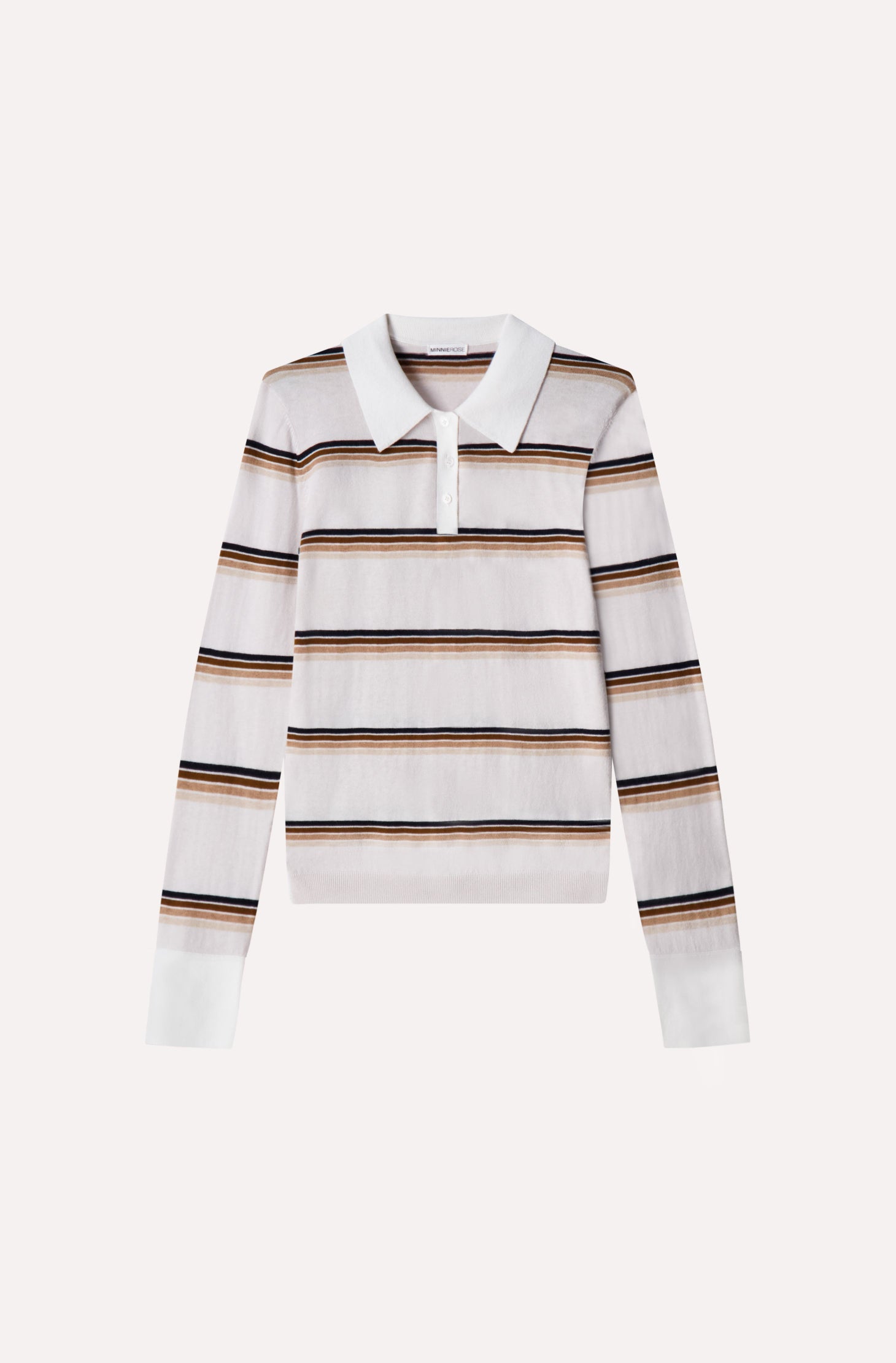 Meet the polo that plays by its own rules. With its classic collar, sporty stripes, and luxuriously soft cotton cashmere blend, this long sleeve is serving up timeless style with a modern Minnie Rose twist. It's polished, it's effortless, it's everything your closet’s been waiting for!