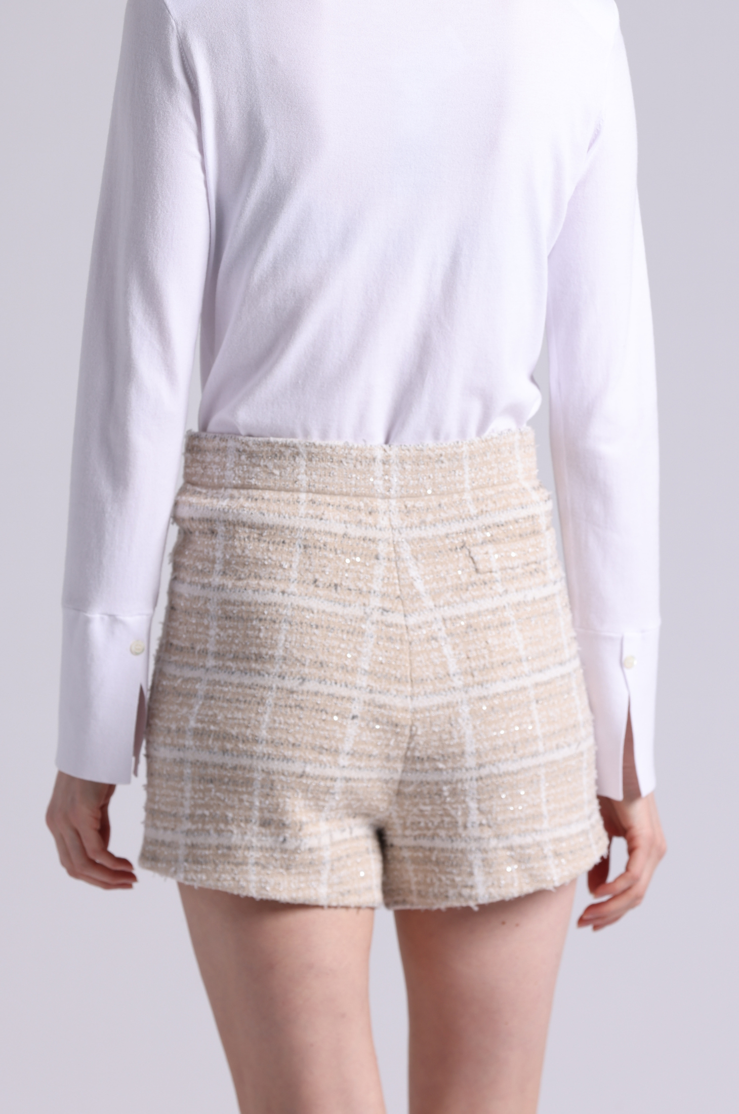 Softly textured tweed woven with delicate sparkle for depth and quiet impact. Cut in a relaxed, mid-rise silhouette that modernizes traditional tailoring.