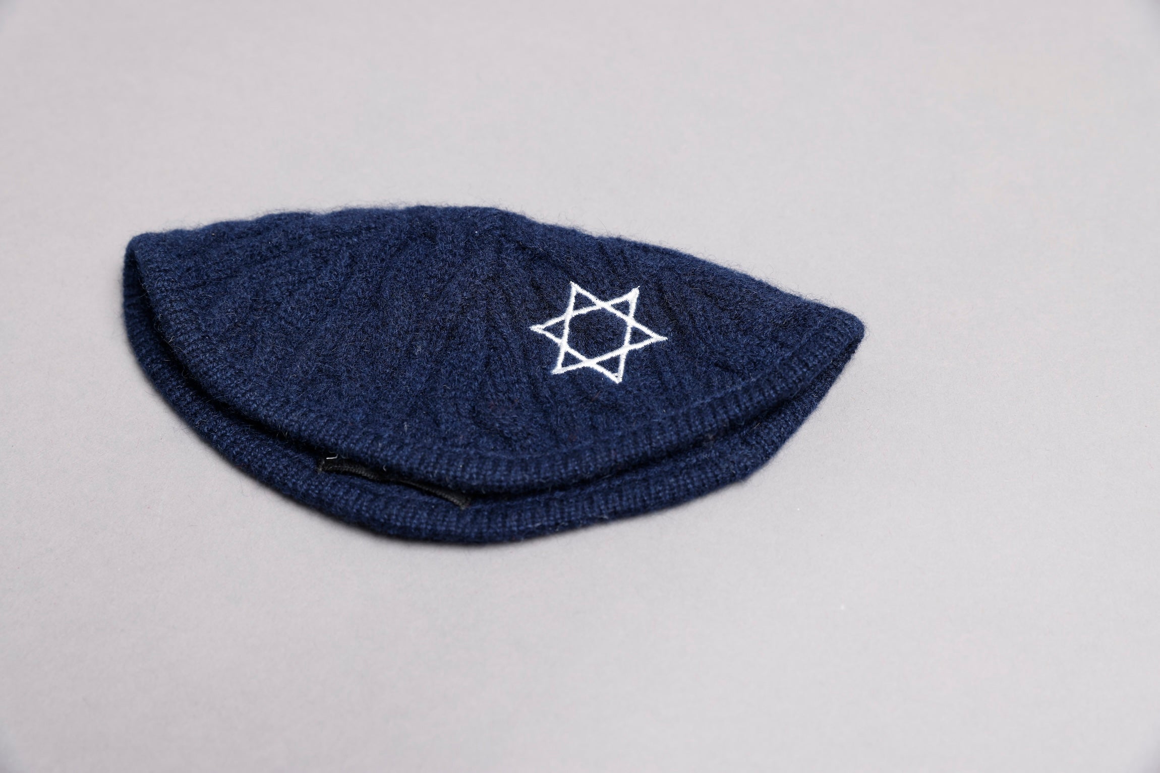 This beautifully crafted yarmulka is made from the finest cashmere, ensuring unparalleled softness and comfort. The intricate cable embroidery adds a touch of elegance and sophistication, making it the perfect accessory, whether worn for religious ceremonies or as a stylish fashion statement. The Cashmere Cable Embroidery Yarmulka is a timeless piece that embodies quality and tradition.