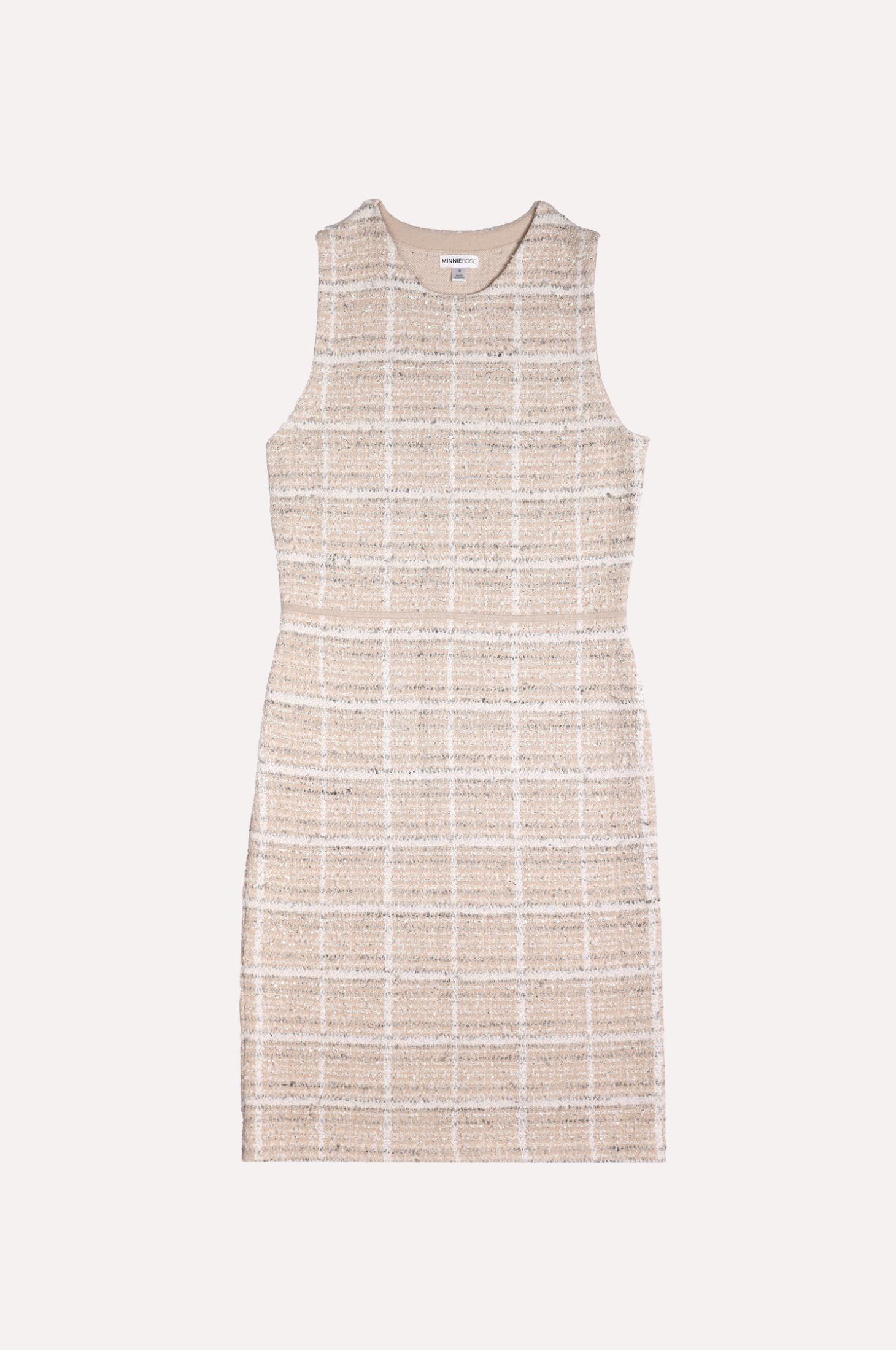 Textured viscose tweed infused with understated shimmer, cut into a streamlined sleeveless dress with a relaxed silhouette.