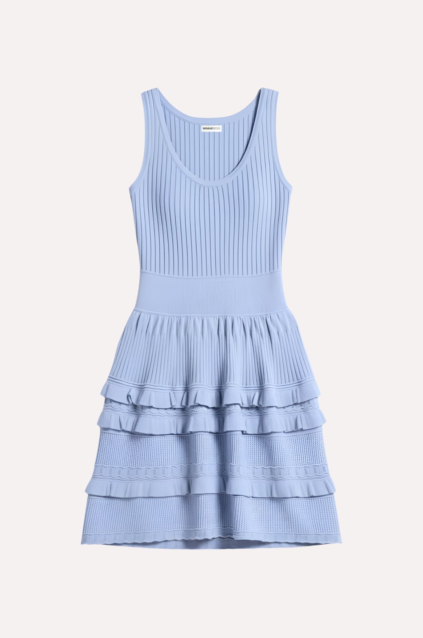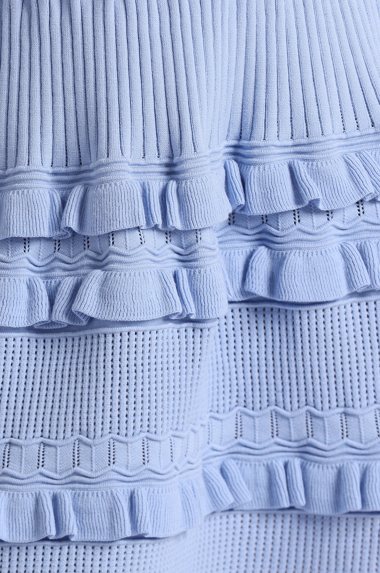 A ribbed viscose bodice with a flattering U neckline meets an airy pointelle skirt in a soft A-line shape. Finished with a 360° ruffle hem for movement from every angle.