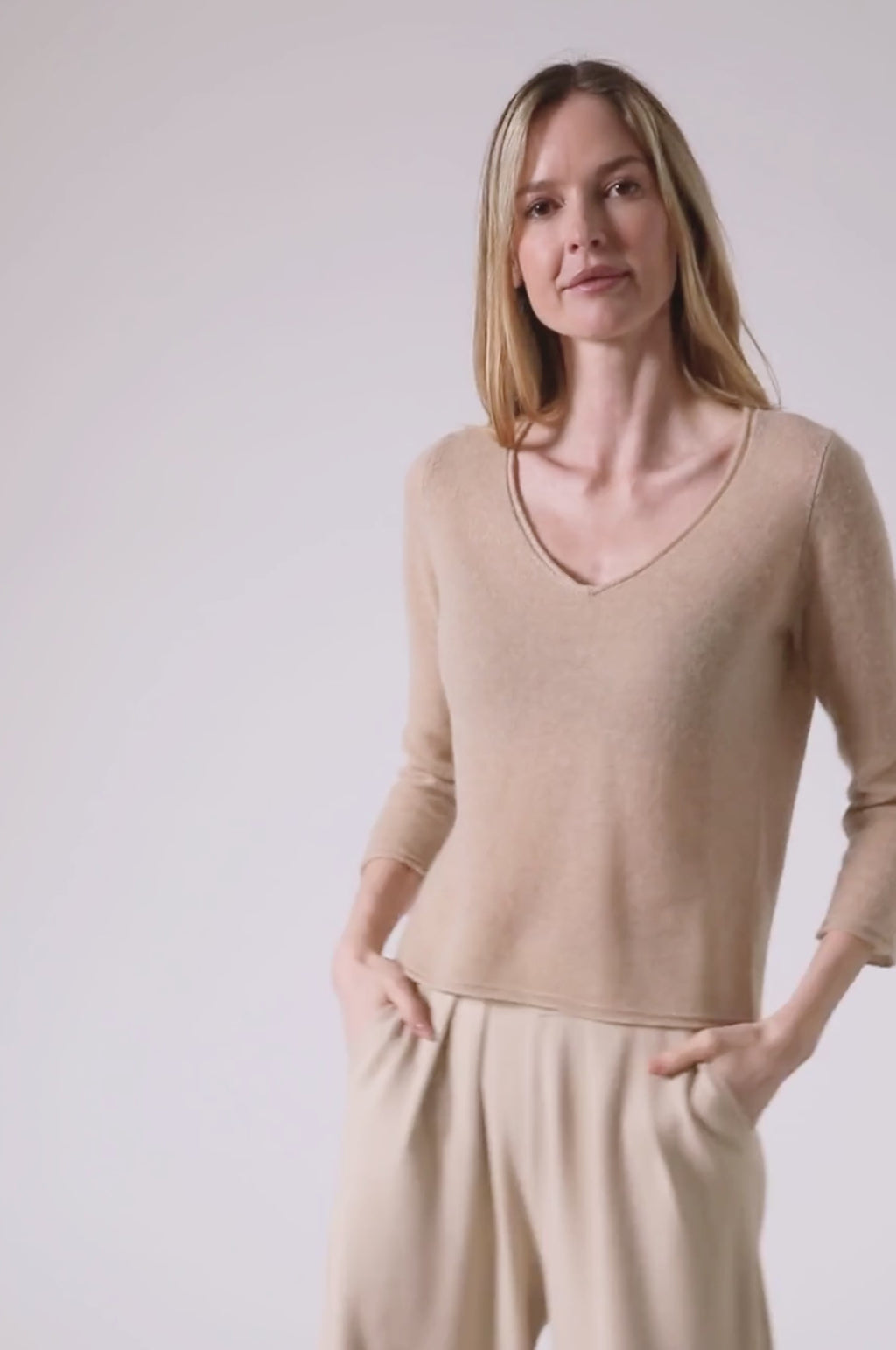 Sheer Luxury Cashmere 3/4 Sleeve V Neck