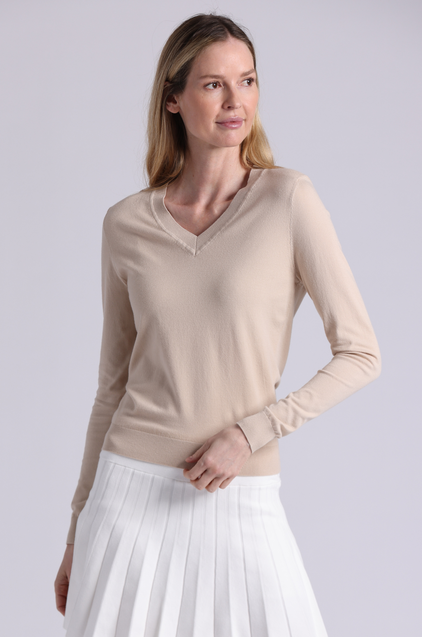 This sleek V-neck features a deep neckline that flatters. The fit skims the body just right, and the silky-soft viscose drapes like a dream. Lightweight, cool, and made to stand out—day or night.