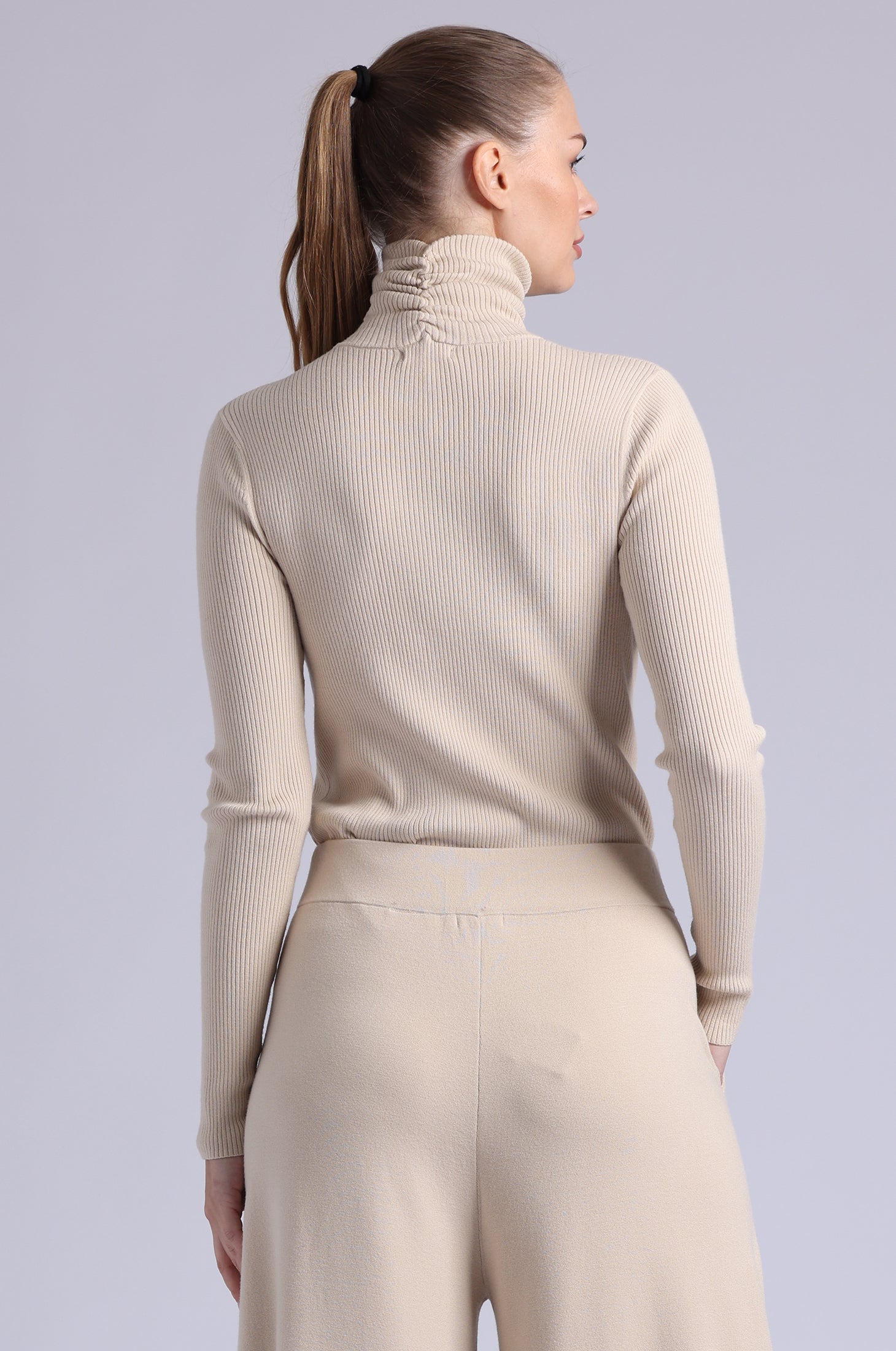 Ribbed, sculpted, and full of character—the Viscose Ribbed Shirred Mock turns heads from every angle. Its structured mock neckline and subtle shirring add dimension, while the delicate back-of-neck detail gives a polished, unexpected touch. Wear it solo or layered for instant style impact.