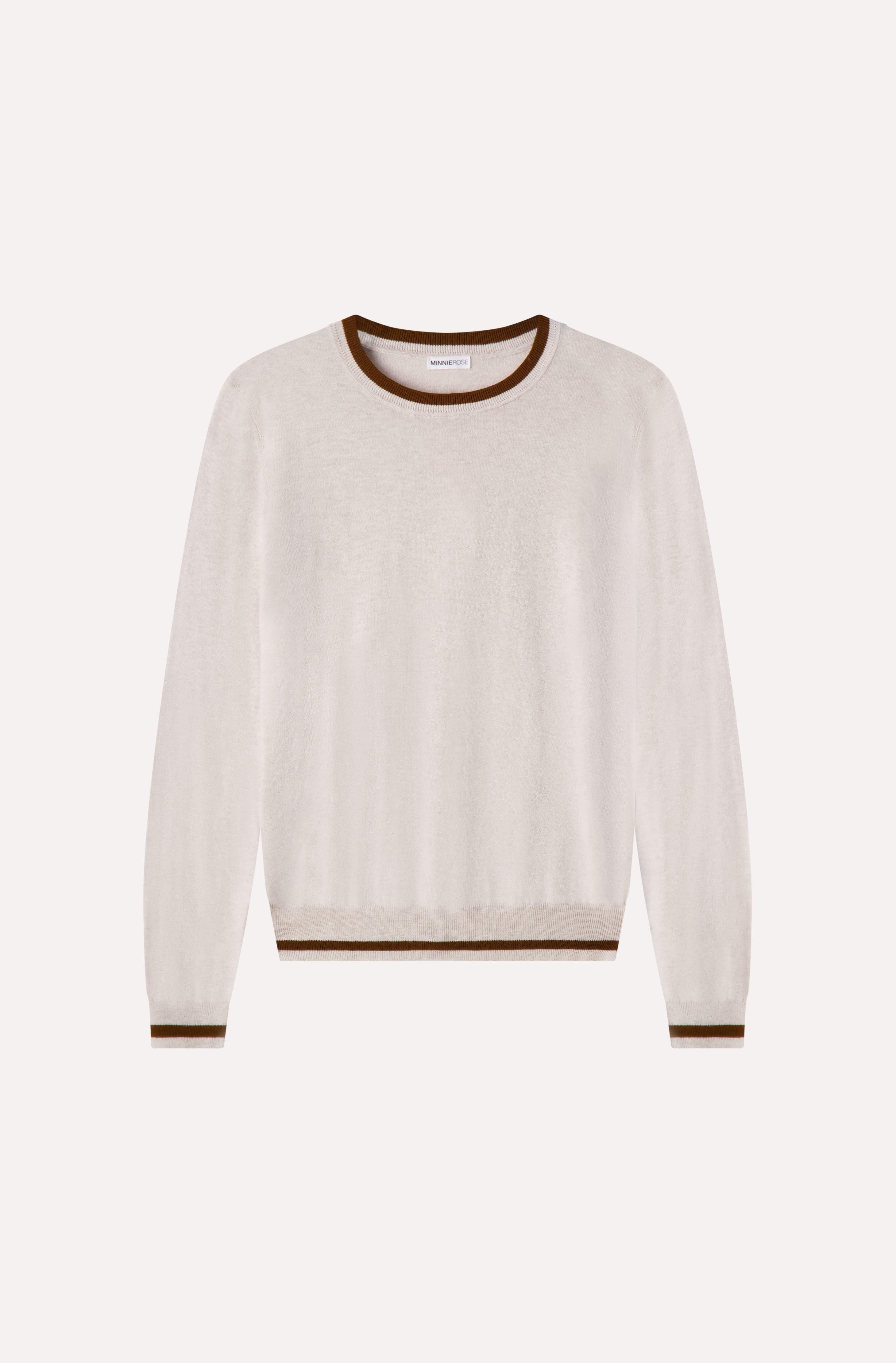 Crafted from a luxurious blend of ultra-soft Supima cotton and cashmere, this lightweight knit offers unparalleled comfort with a touch of understated sophistication. Designed with a classic crew neckline and a flattering silhouette, it’s the subtle contrast tipping detail that sets this piece apart — adding a modern twist to a timeless staple.