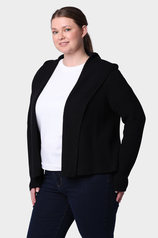 Plus Size Cotton Shaker Hooded Flyaway Cardigan