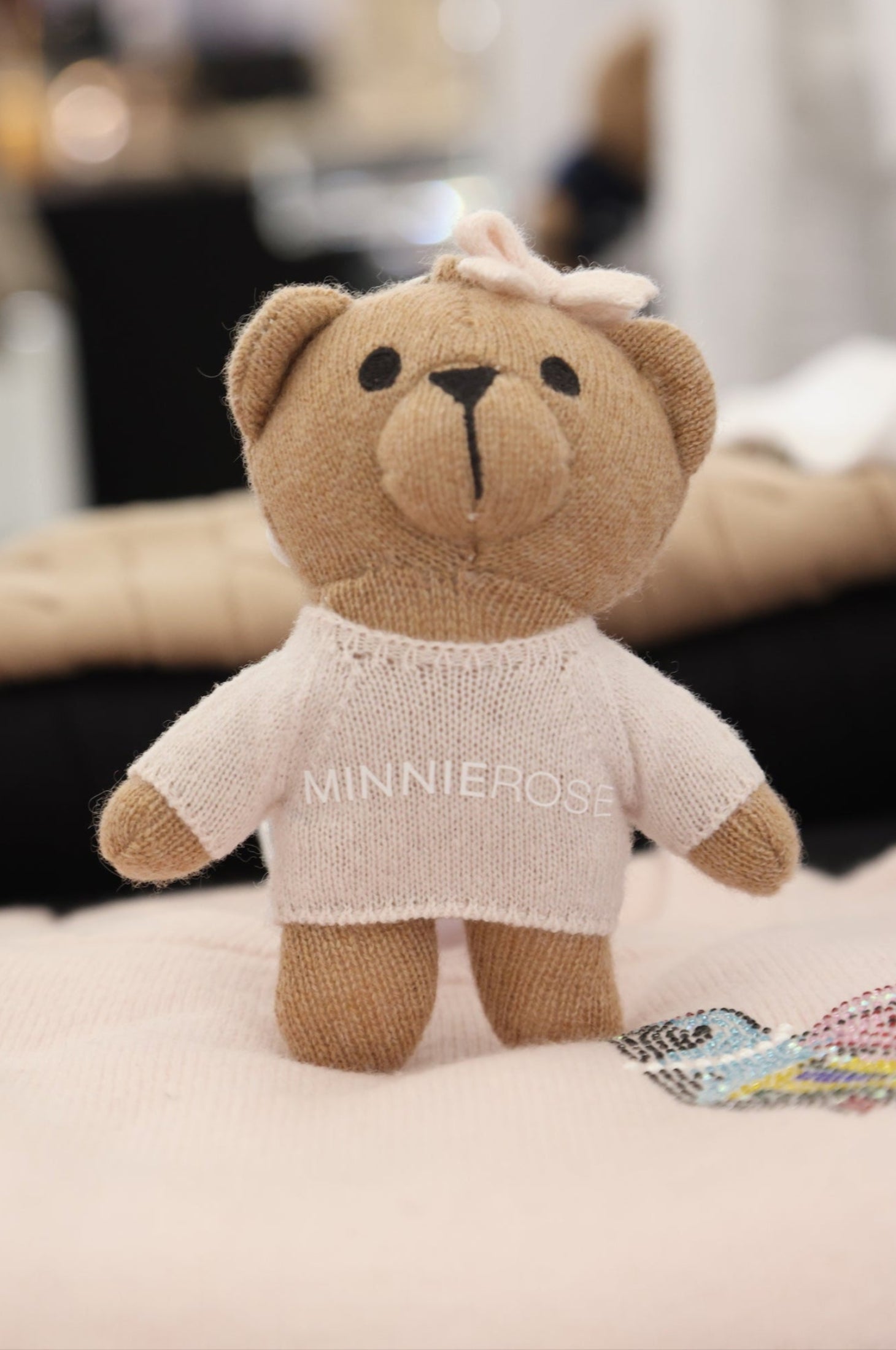 Tiny, touchable luxury. Meet the cashmere Minnie Rose Teddy Bear Keychain—soft, spoiled, and ready for the spotlight. Clip it on your tote or keys for a wink of whimsy with a side of serious style.