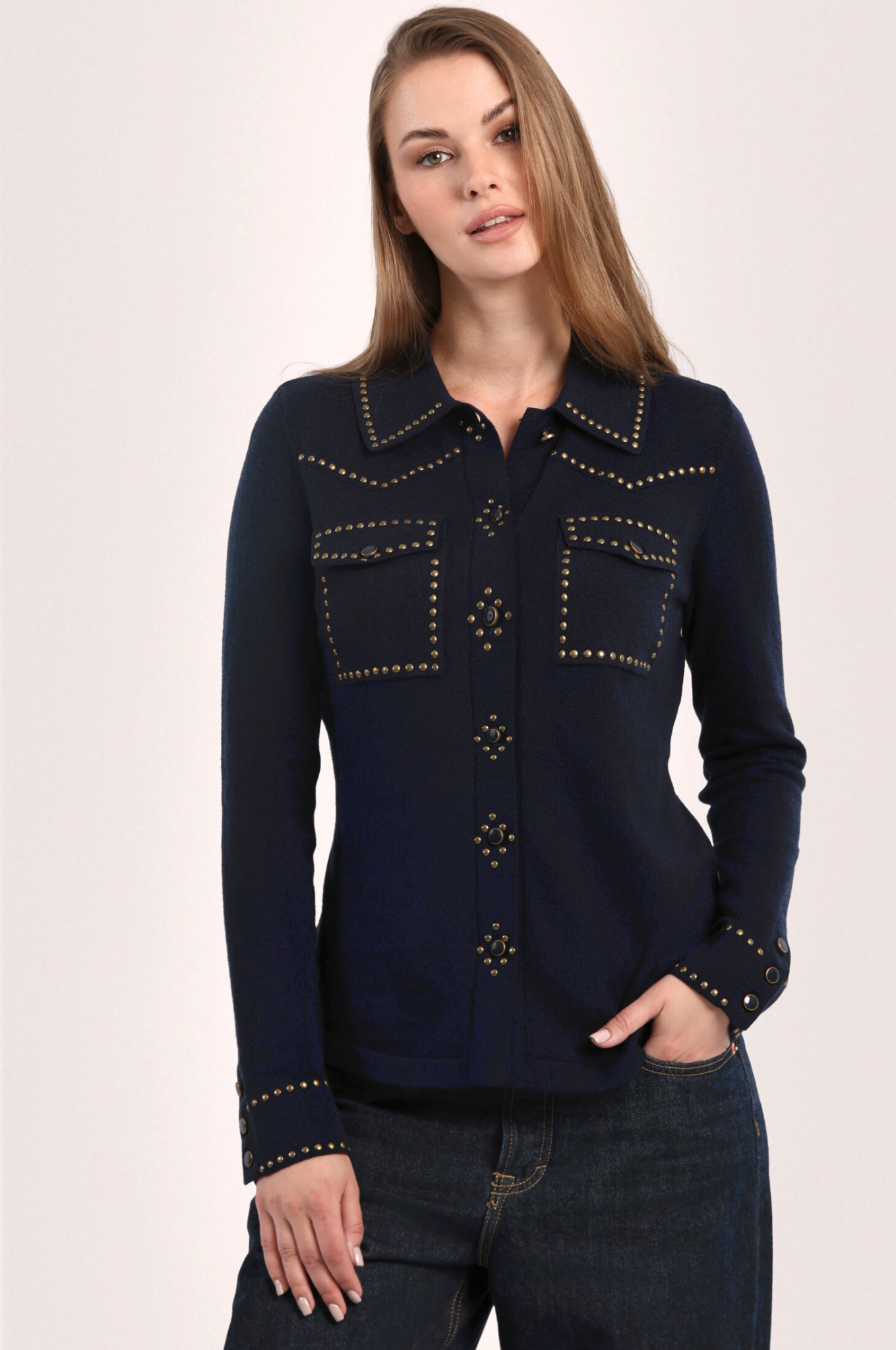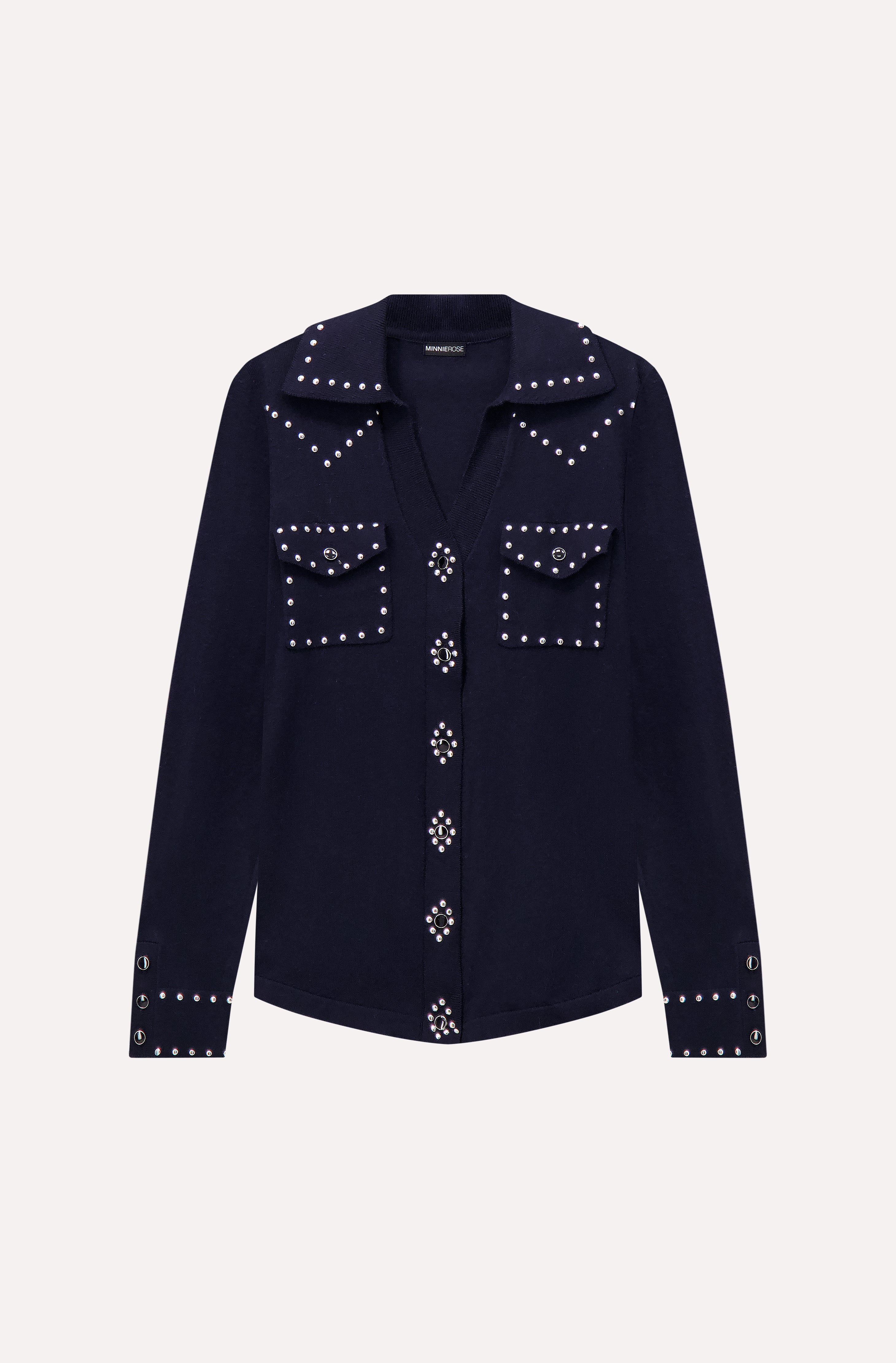 What makes it irresistible? The signature hot fix buttons that catch the light and add a subtle sparkle, turning everyday chic into instant glam. With a relaxed fit and timeless button-down design, it’s perfect for layering, lounging, or stepping out in style.