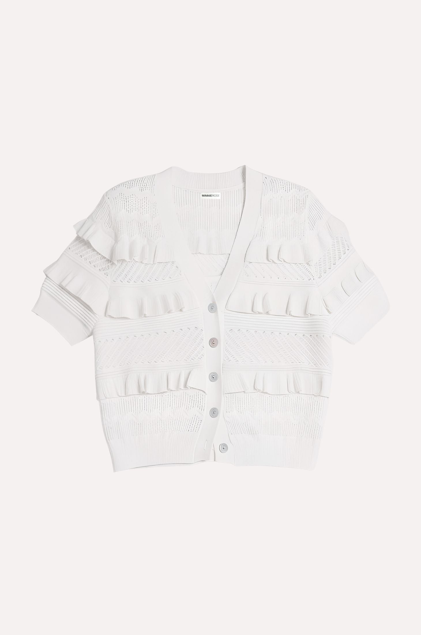 Viscose Pointelle Ruffle Cardigan