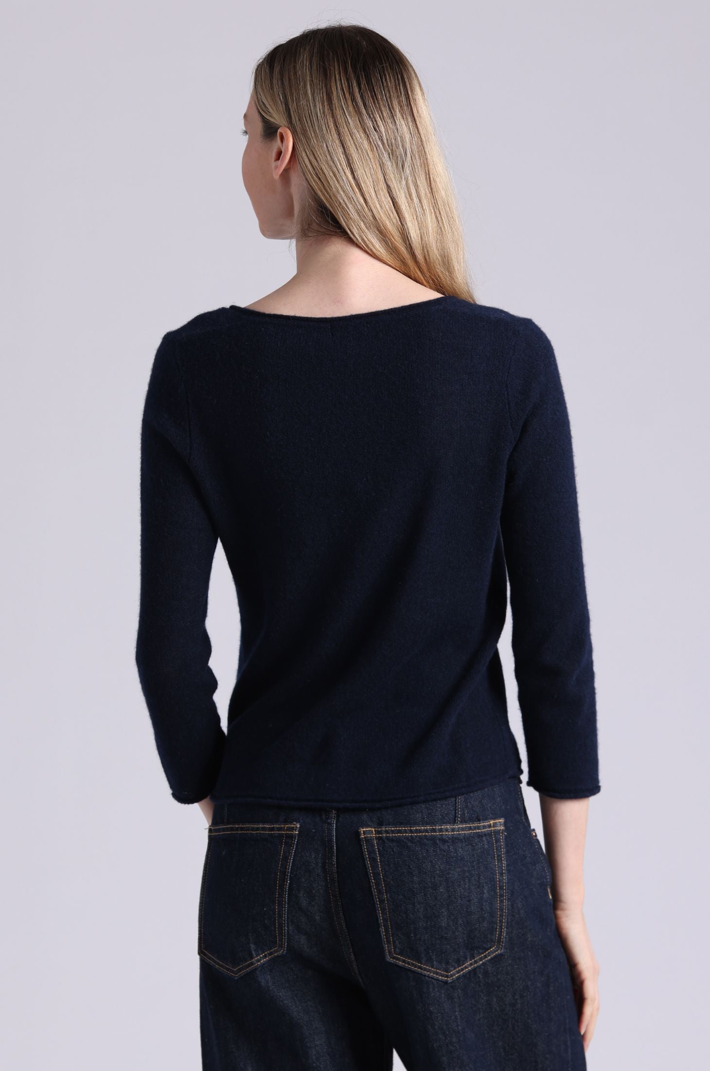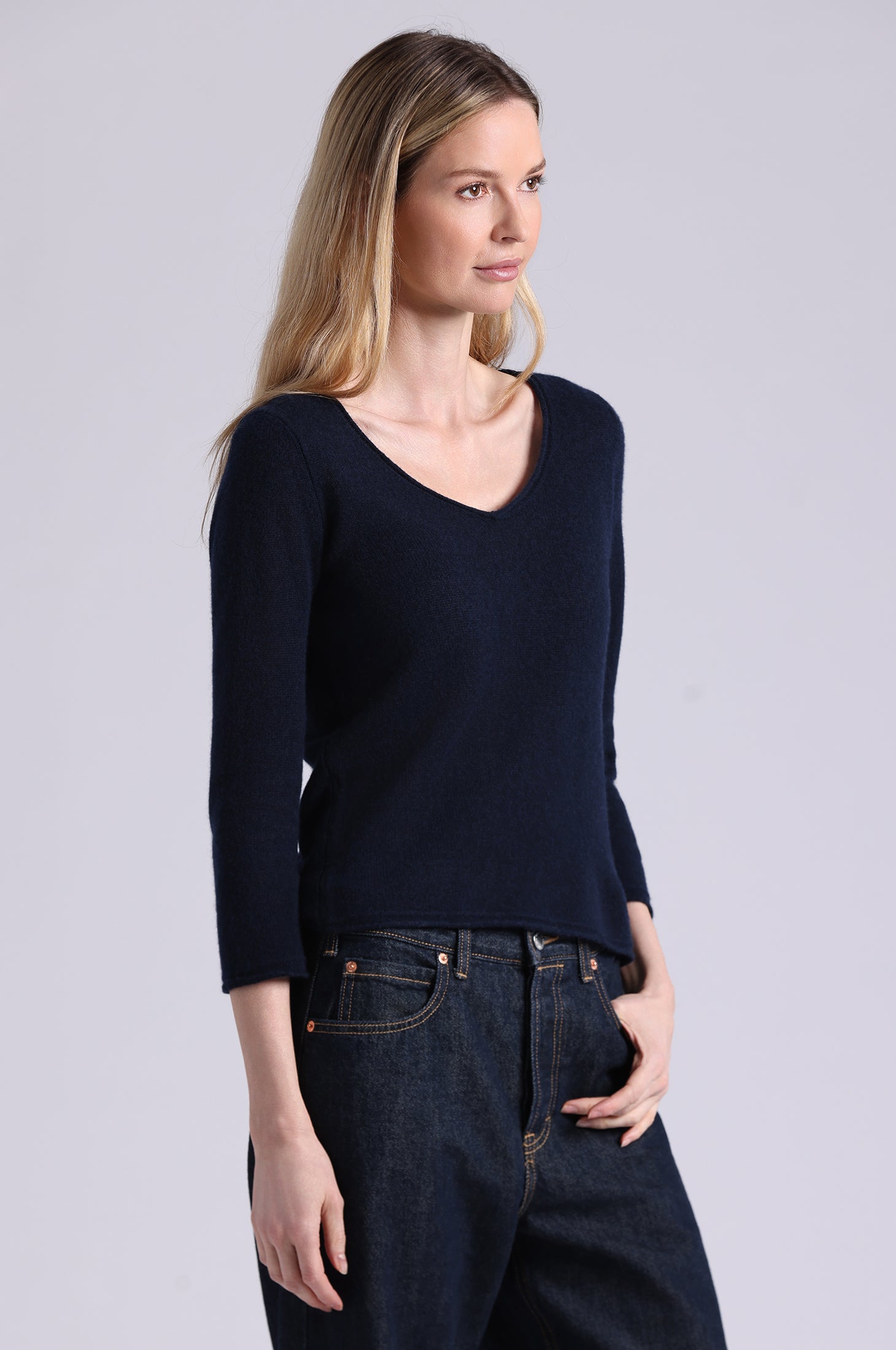 Sheer Luxury Cashmere 3/4 Sleeve V Neck