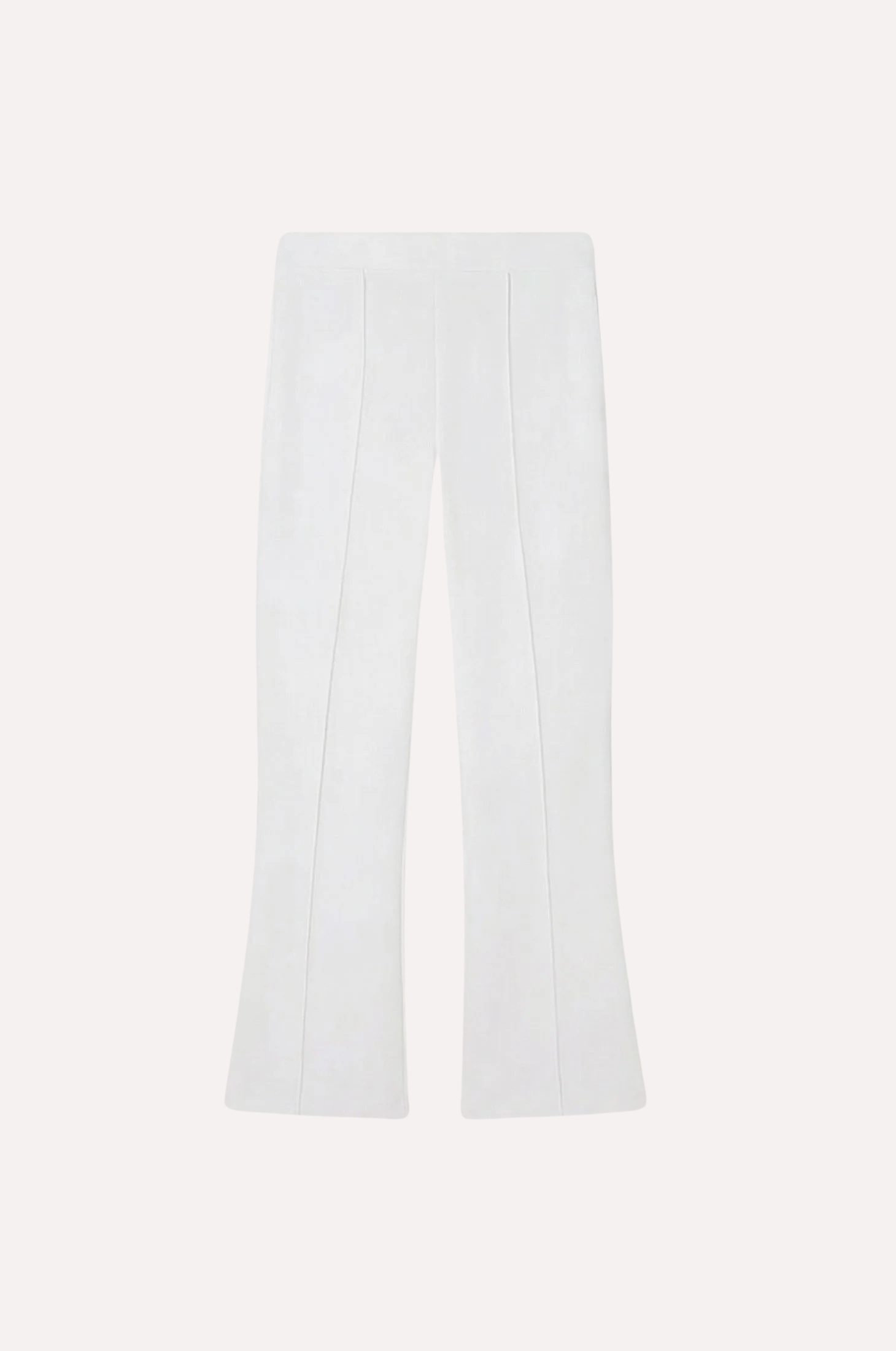Soft, stretch viscose delivers structure and weight for a smoothing, sculpted fit. Featuring a comfortable elastic waistband, center seams down each leg for a lengthening effect, and a subtle kick flare at the hem.