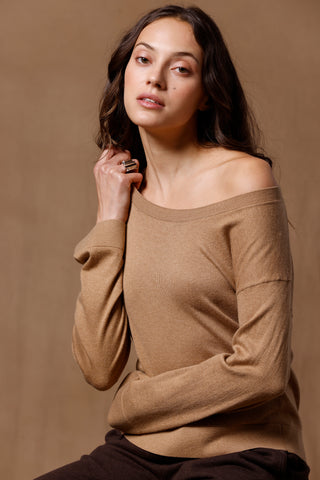 Slip into something that feels as seductive as it looks! Crafted in our ultra-luxe cotton-cashmere yarn that feels like a whisper against your skin, the sultry, shoulder-baring neckline teases just the right amount, effortlessly skimming your collarbones and turning up the heat with every move. Designed to cling softly in all the right places, this top balances comfort with pure allure!